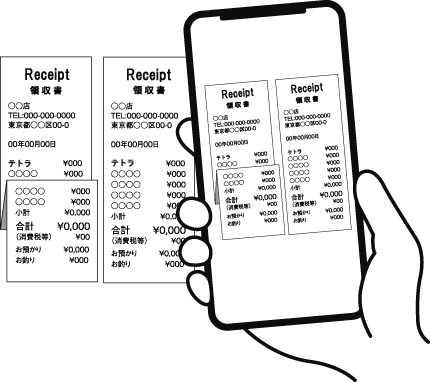 ・レシートが長い場合は折って撮影してください。 ※折った場合、上記必須事項の5項目が写るようにしてください。